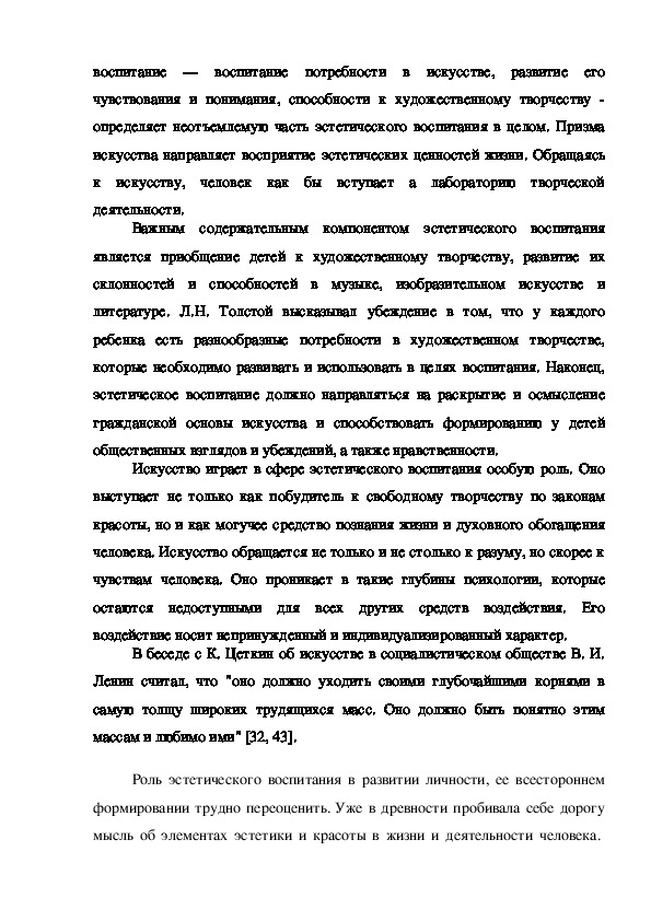 Роль эстетического воспитания в развитии личности, ее всестороннем