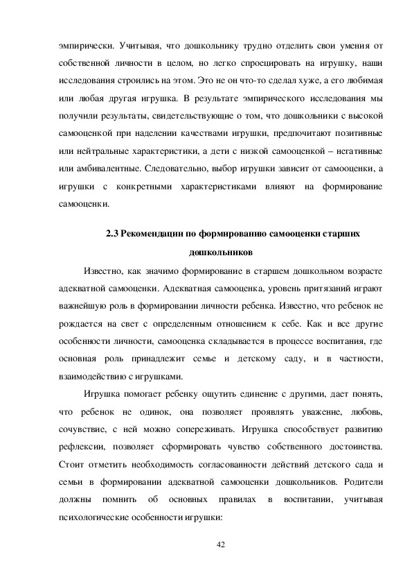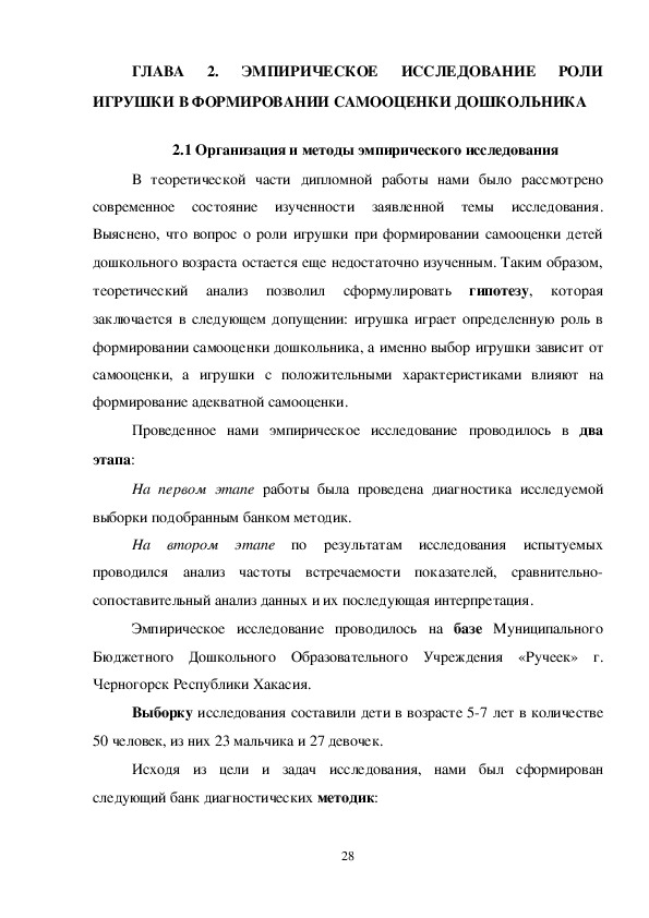 Глава 2. Эмпирическое исследование роли игрушки в формировании