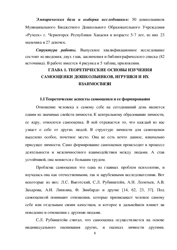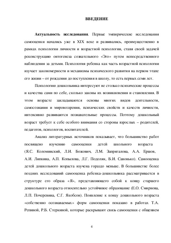 Глава 1. Теоретические основы изучения самооценки дошкольников,
