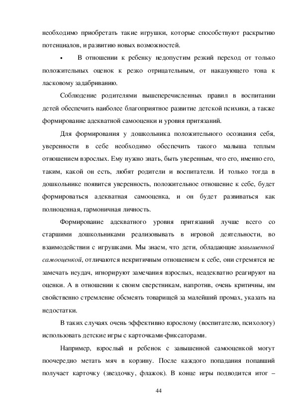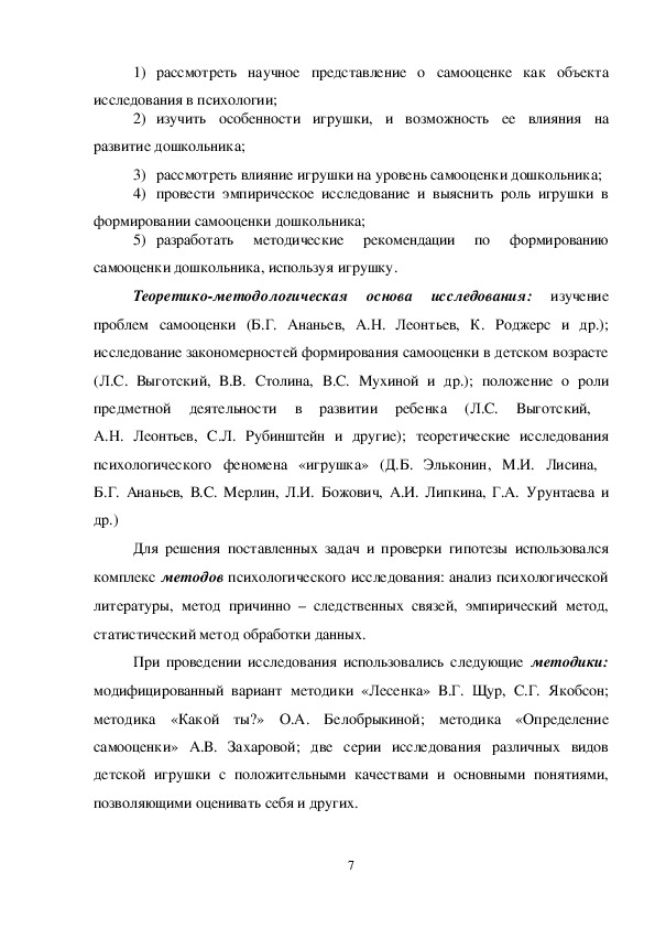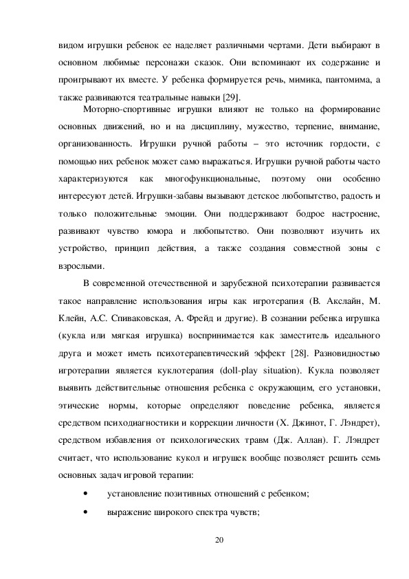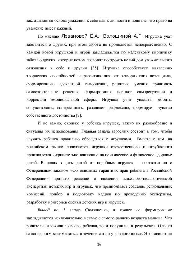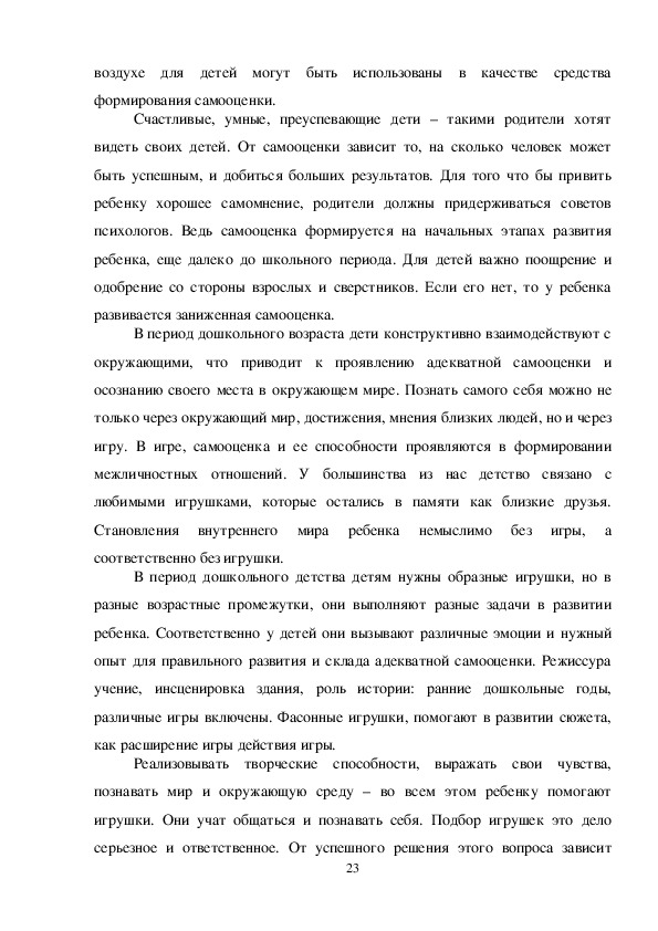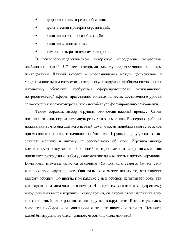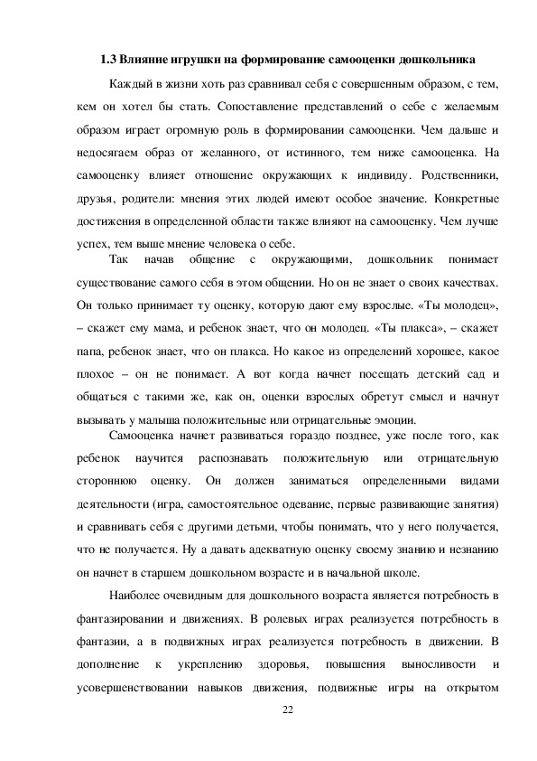 1.3. Влияние игрушки на формирование самооценки дошкольника………20
