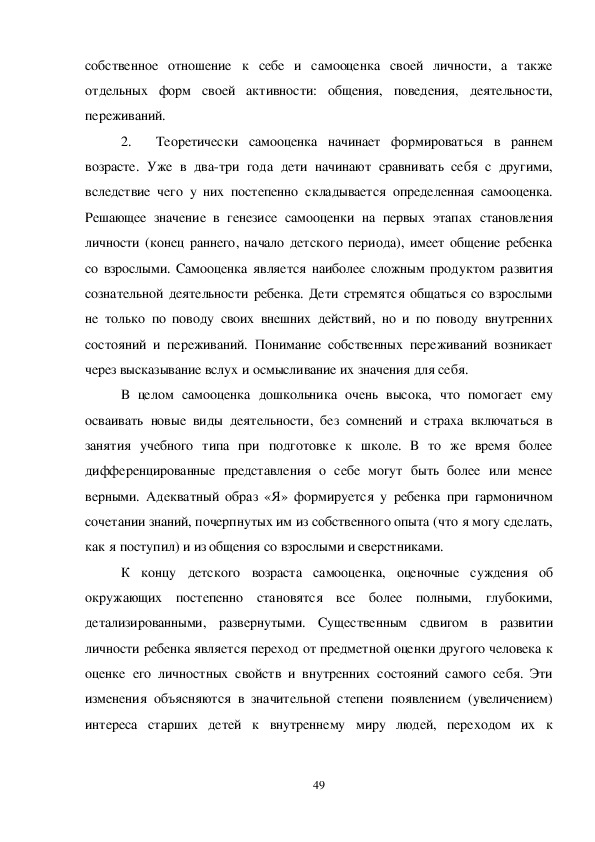 поздних исследований самооценка ребенкадошкольника рассматривается в