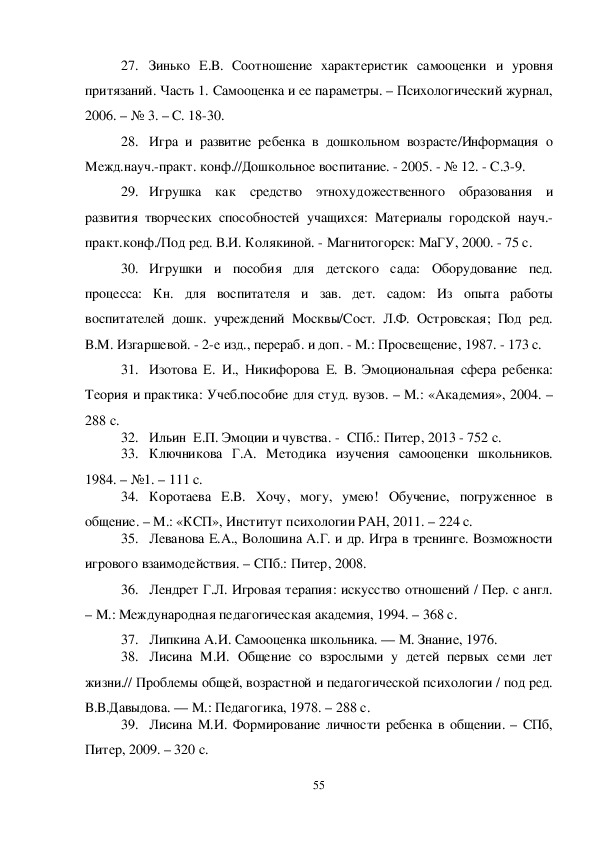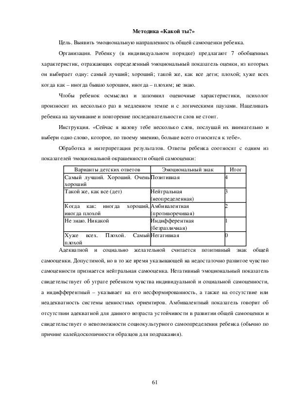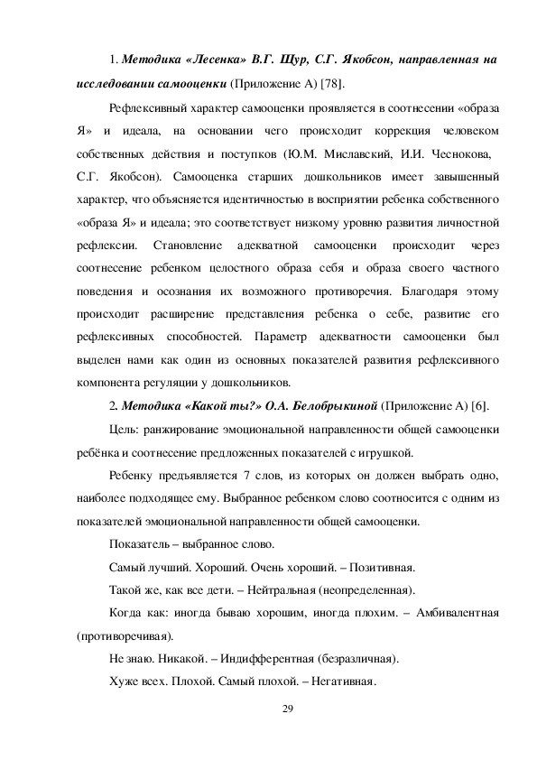 А.И. Липкина, А.П. Копылова, Л.Г. Подоляк, Б.И. Савонько). Самооценка
