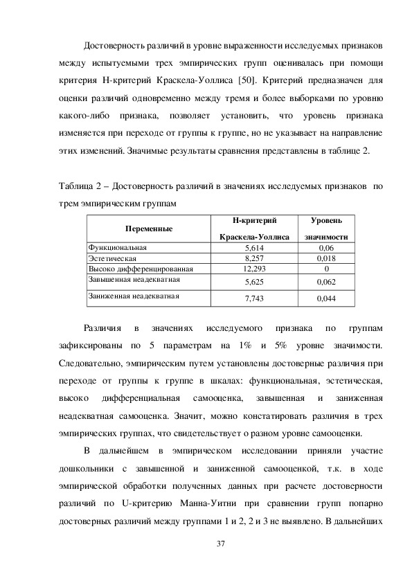 эмпирических групп оценивалась при помощи критерия Hкритерий