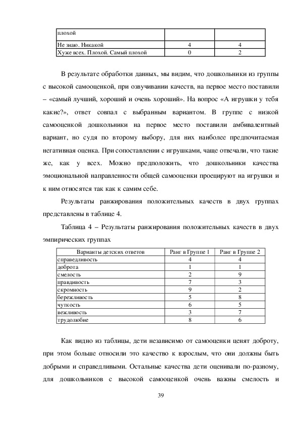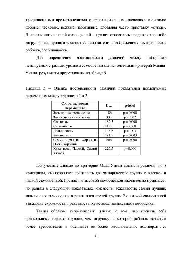 данных, мы видим, что дошкольники из группы с высокой самооценкой, при