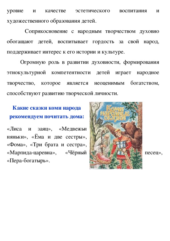 народное творчество. Коми народные сказки вбирают в себя