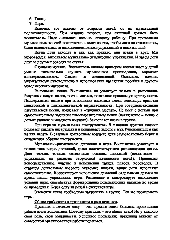 8. Наблюдать за дисциплиной на протяжении всего музыкального занятия.