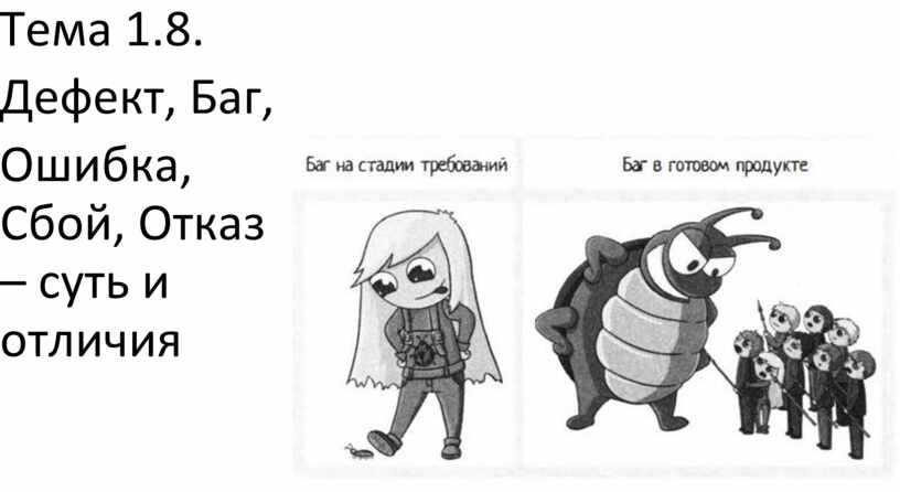 • Баг (Bug) – разговорный термин, эквивалентный дефекту или ошибке.