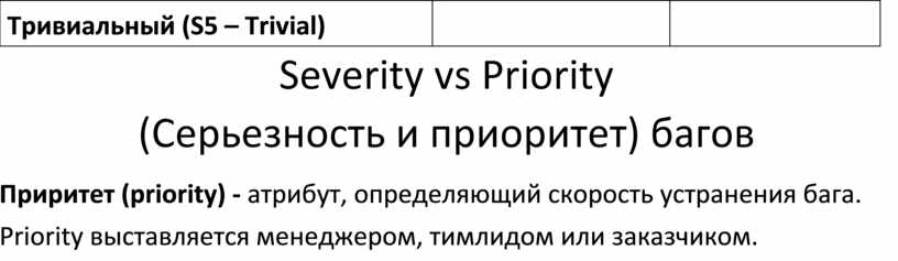 (Серьезность и приоритет) багов