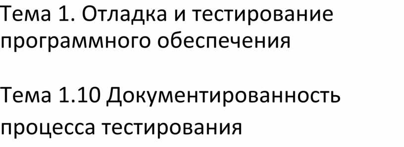 Тема 1.10 Документированность процесса тестирования