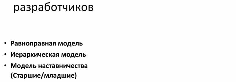 Методы организации работы в команде разработчиков• Равноправная модель