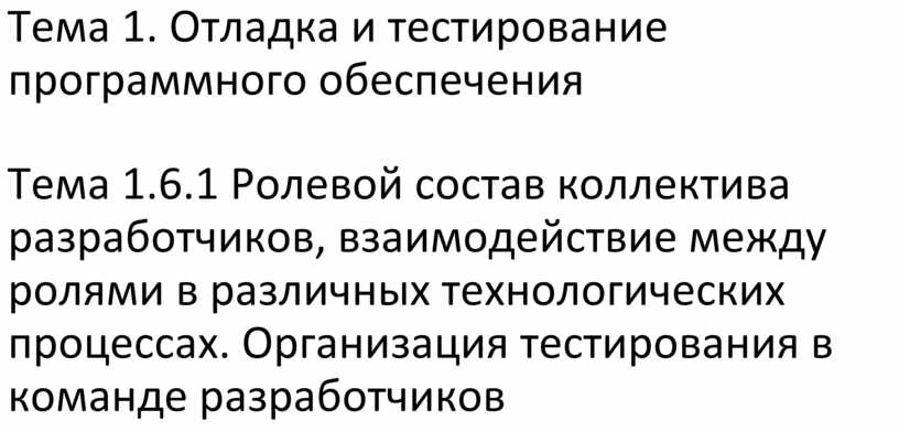 Тема 1.6.1 Ролевой состав коллектива разработчиков, взаимодействие между ролями в различных технологических процессах. Организация тестирования в команде разработчиков