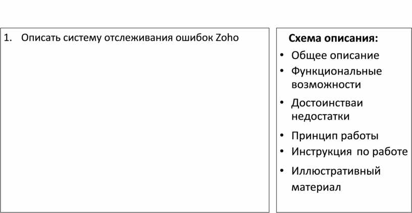 Схема описания: • Общее описание • Функциональные возможности • Достоинства и недостатки • Принцип работы • Инструкция по работе • Иллюстративный материал |