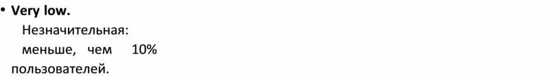 • Very low. Незначительная: меньше, чем 10% пользователей.