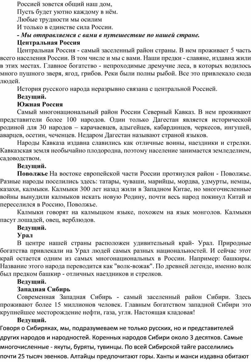Россия – многонациональное государство. Для миллионов представителей разных народов и национальностей Россия является такой же родиной, как и для русских. Живя в единой семье, мы вправе знать и почитать духовные и культурные ценности всех народов-братьев.