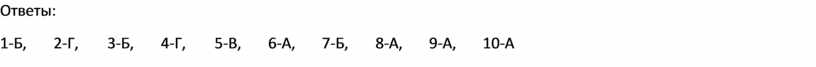 1-Б, 2-Г, 3-Б, 4-Г, 5-В, 6-А, 7-Б, 8-А, 9-А, 10-А