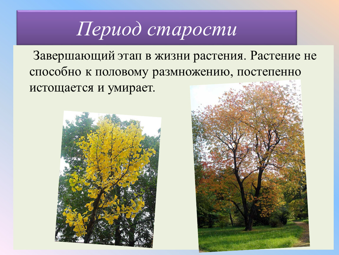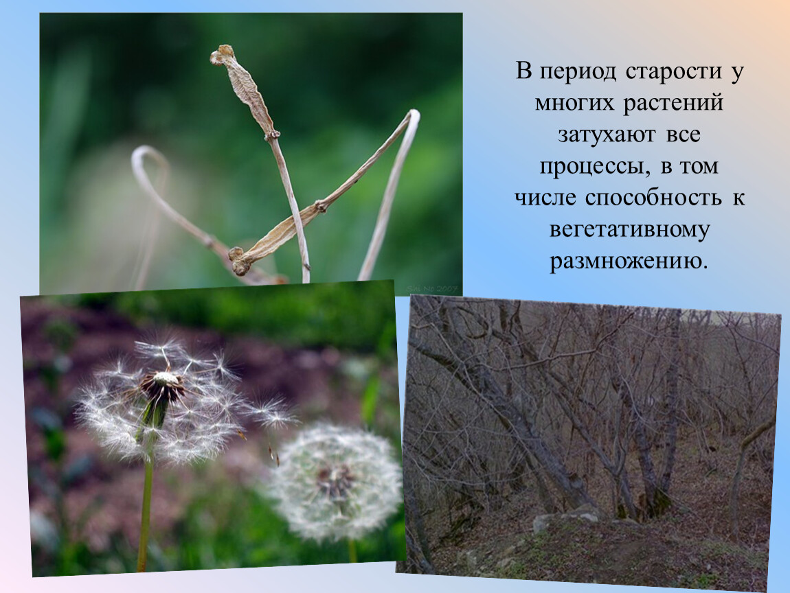 В период старости у многих растений затухают все процессы, в том числе способность к вегетативному размножению.