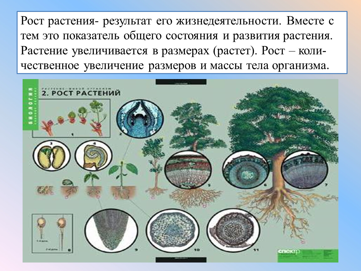 Рост растения- результат его жизнедеятельности. Вместе с тем это показатель общего состояния и развития растения. Растение увеличивается в размерах (растет). Рост – коли-чественное увеличение размеров и массы тела организма.