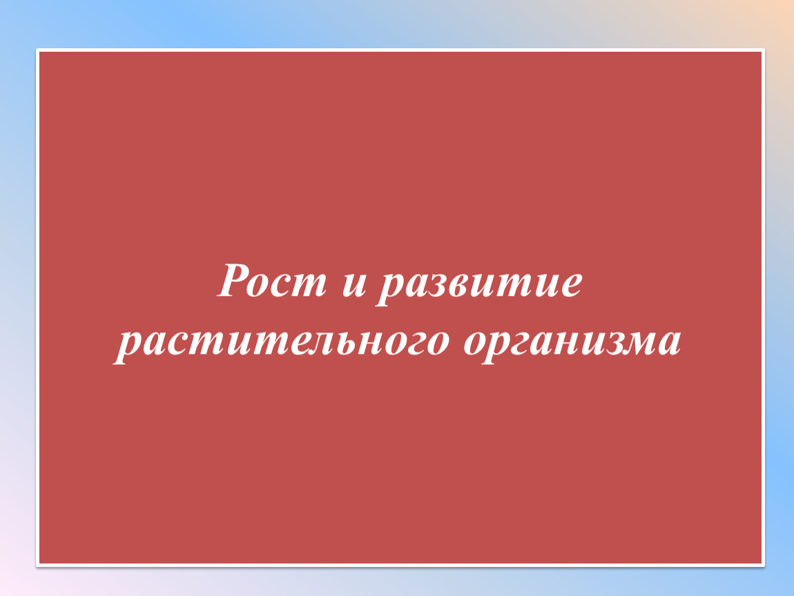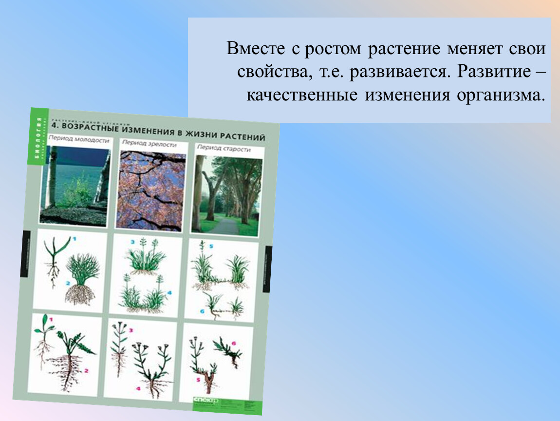 Вместе с ростом растение меняет свои свойства, т.е. развивается. Развитие – качественные изменения организма.