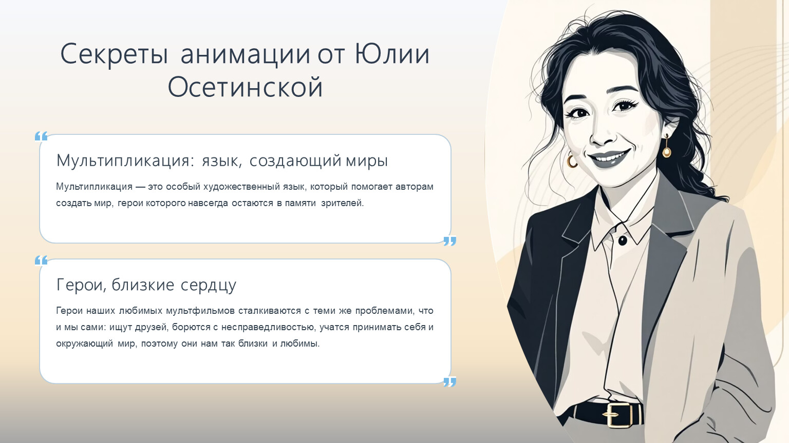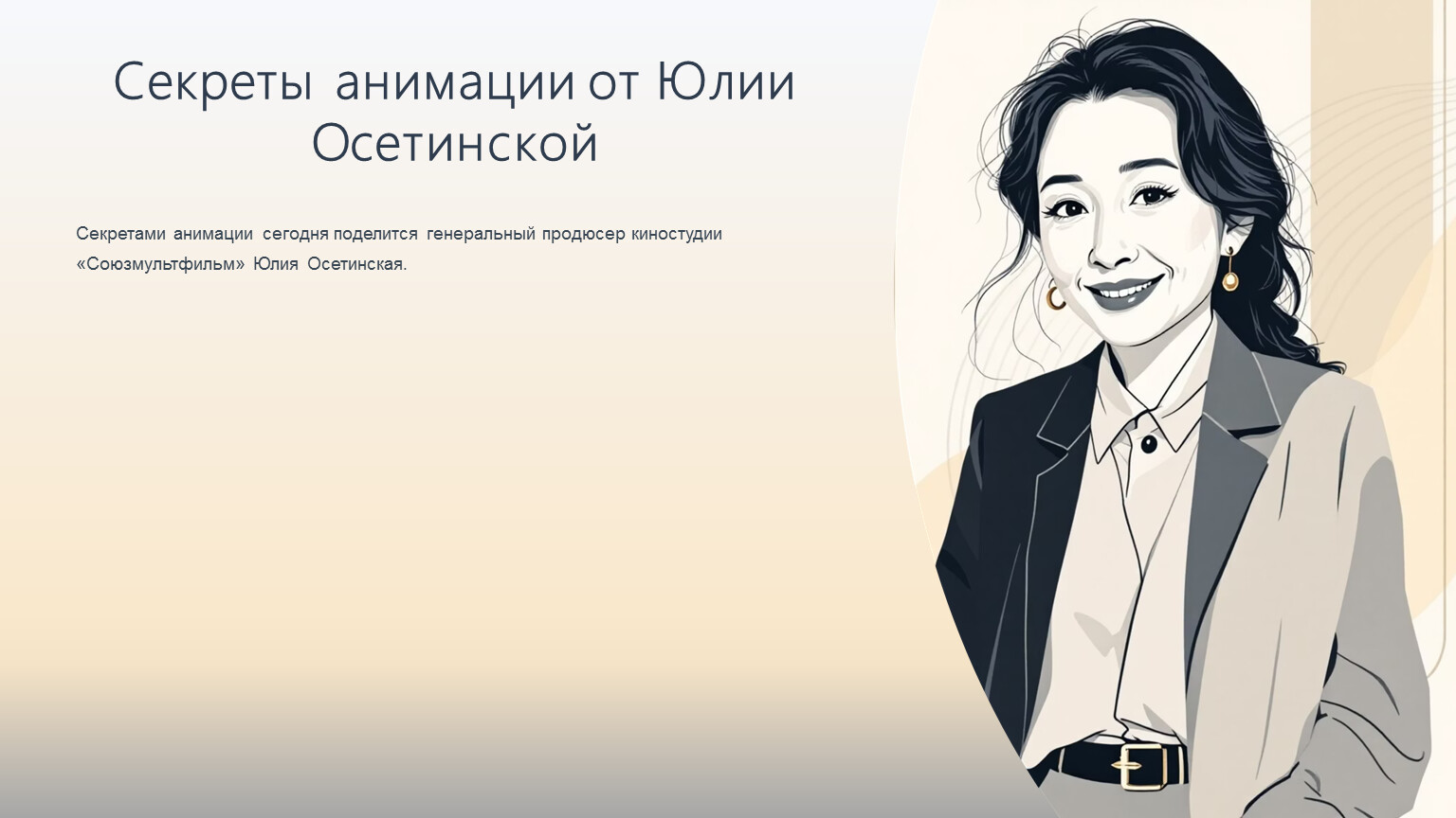 Секретами анимации сегодня поделится генеральный продюсер киностудии «Союзмультфильм» Юлия Осетинская.