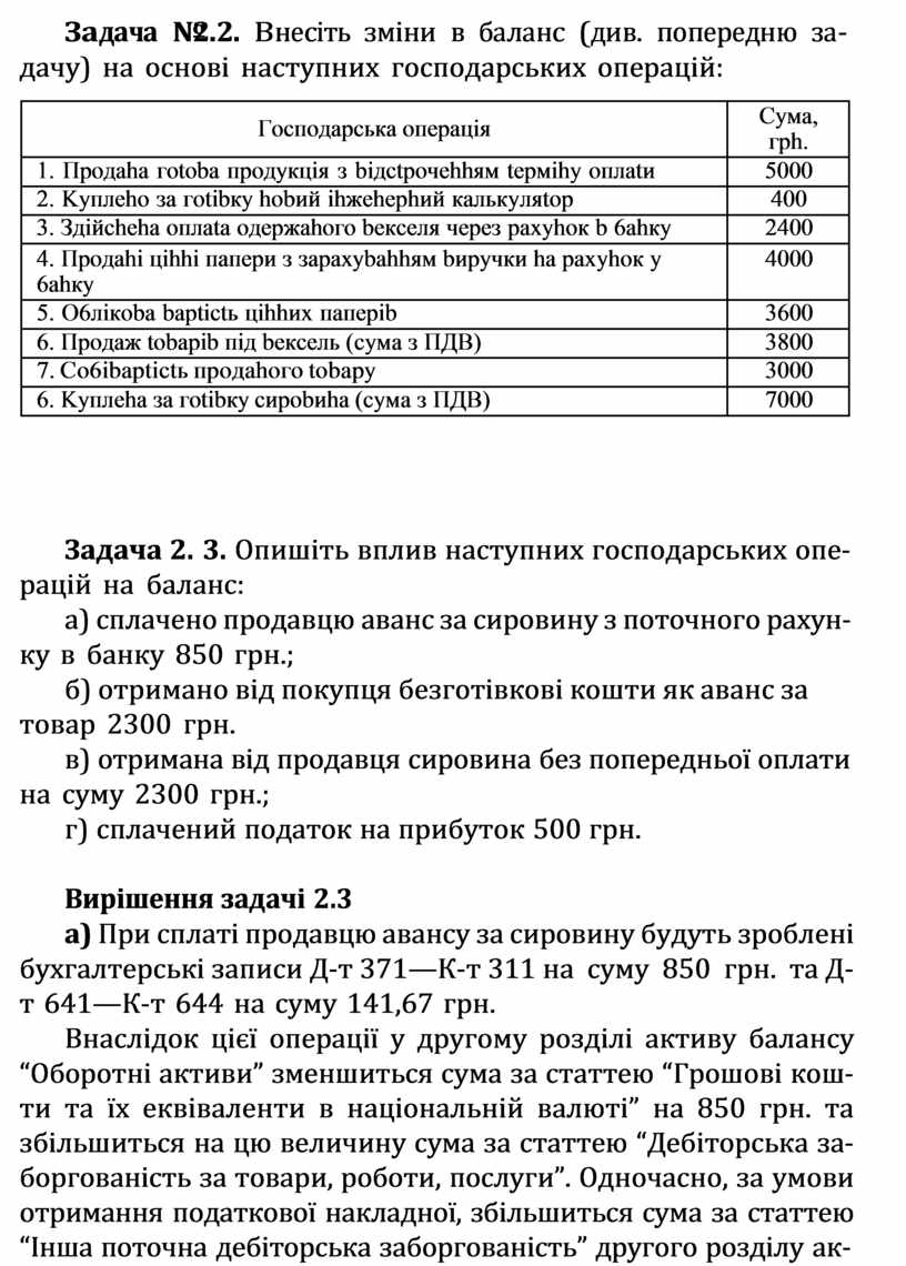 Задача 2. 3. Опишіть вплив наступних господарських опе- рацій на баланс:
