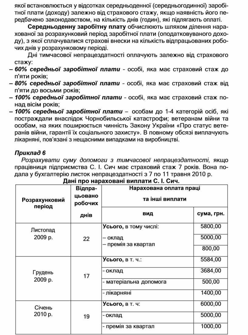 Розрахувати суму допомоги з тимчасової непрацездатності, якщо працівниця підприємства С. І. Сич має страховий стаж 7 років. Вона по- дала у бухгалтерію листок непрацездатності з 7 по 11 травня 2010 р.
