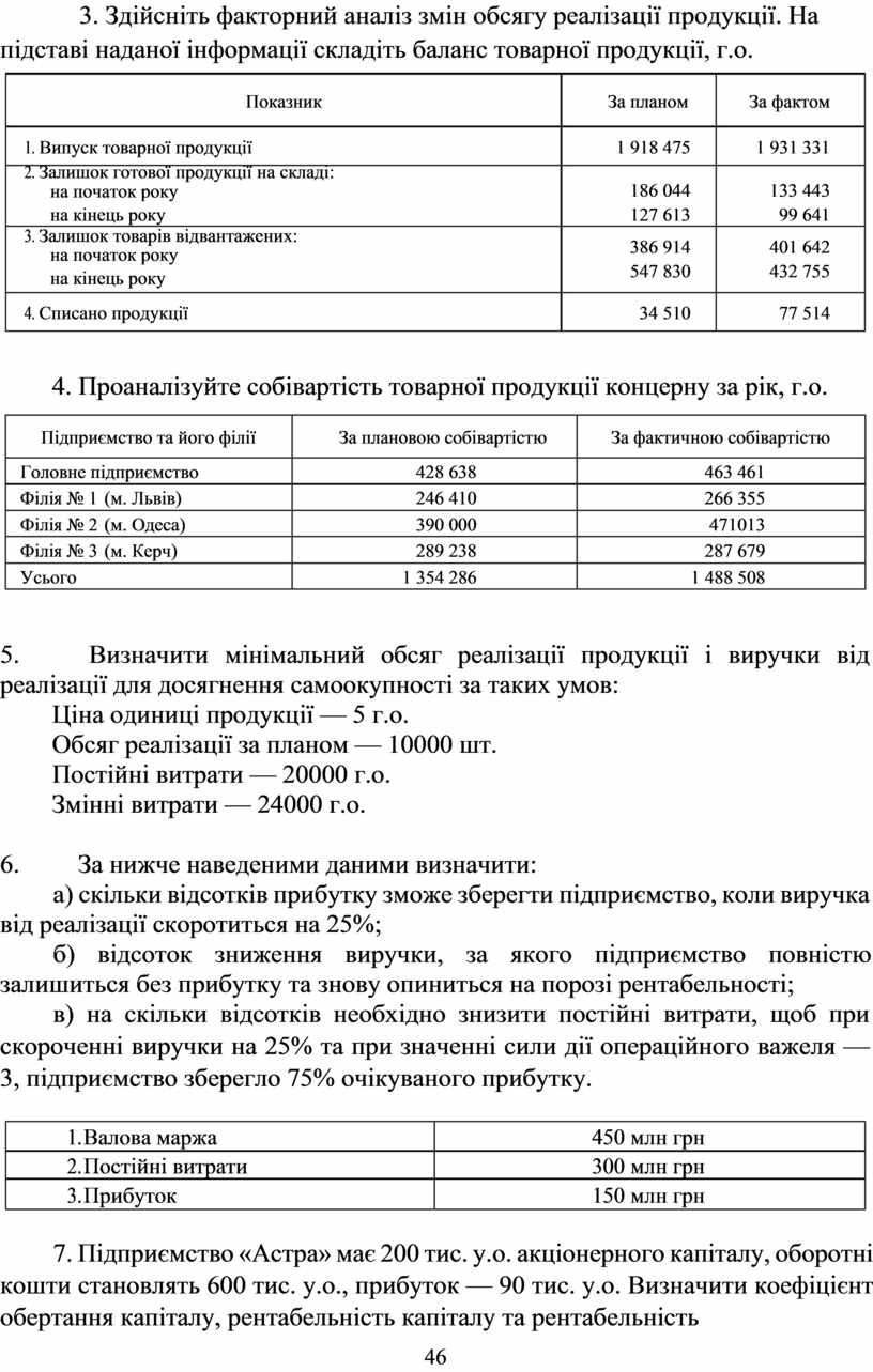 Обсяг реалізації за планом — 10000 шт. Постійні витрати — 20000 г.о.