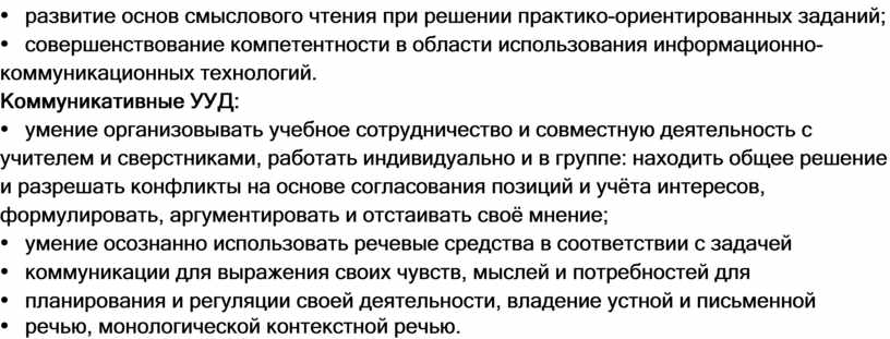 • развитие основ смыслового чтения при решении практико-ориентированных заданий;