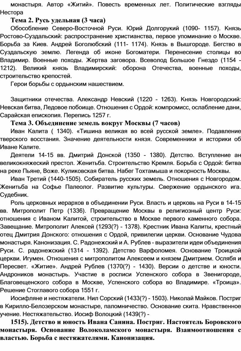Тема 3. Объединение земель вокруг Москвы (7 часов)