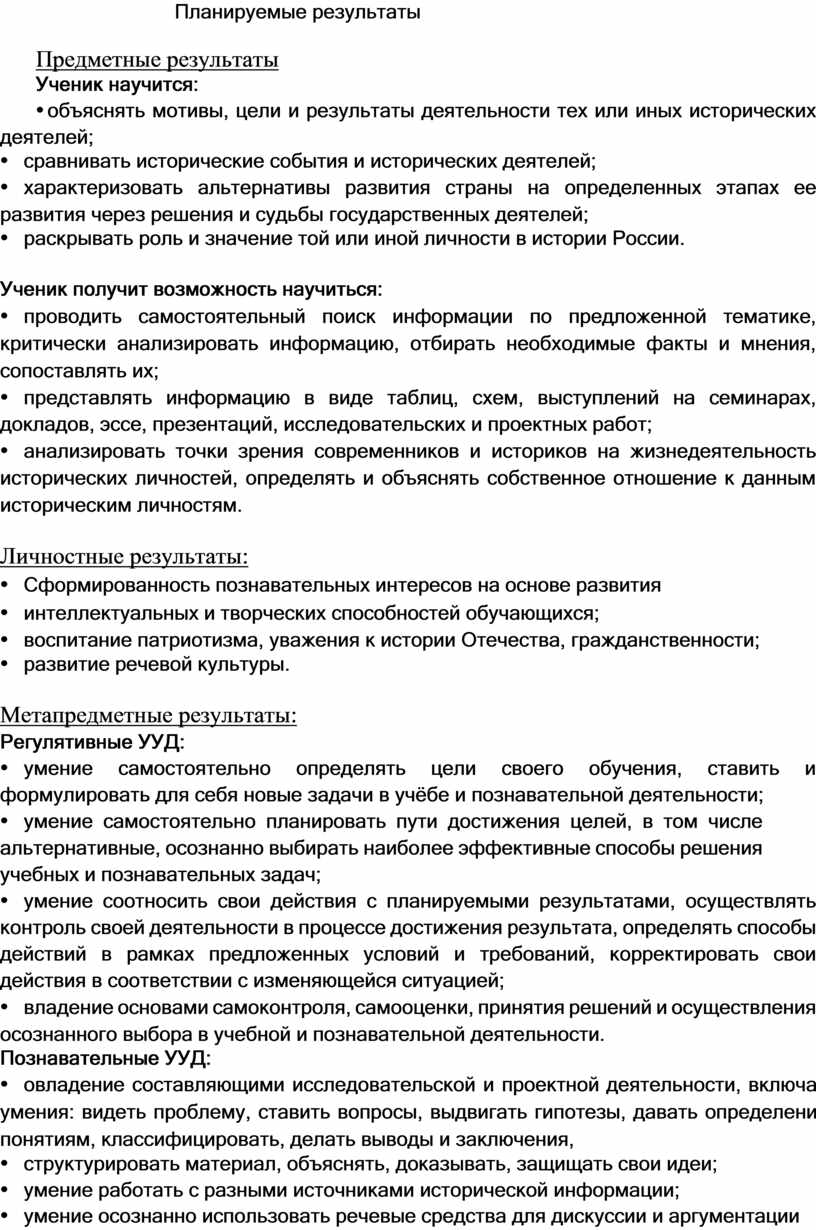 • объяснять мотивы, цели и результаты деятельности тех или иных исторических деятелей;