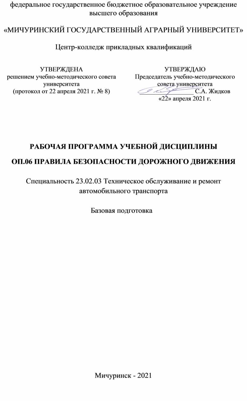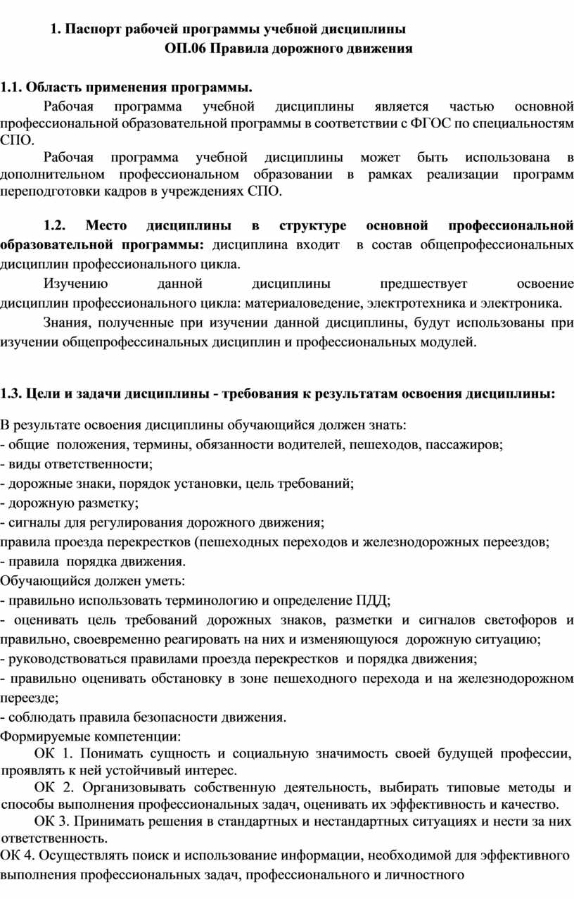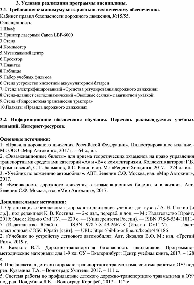 ОП.06 ПРАВИЛА БЕЗОПАСНОСТИ ДОРОЖНОГО ДВИЖЕНИЯ