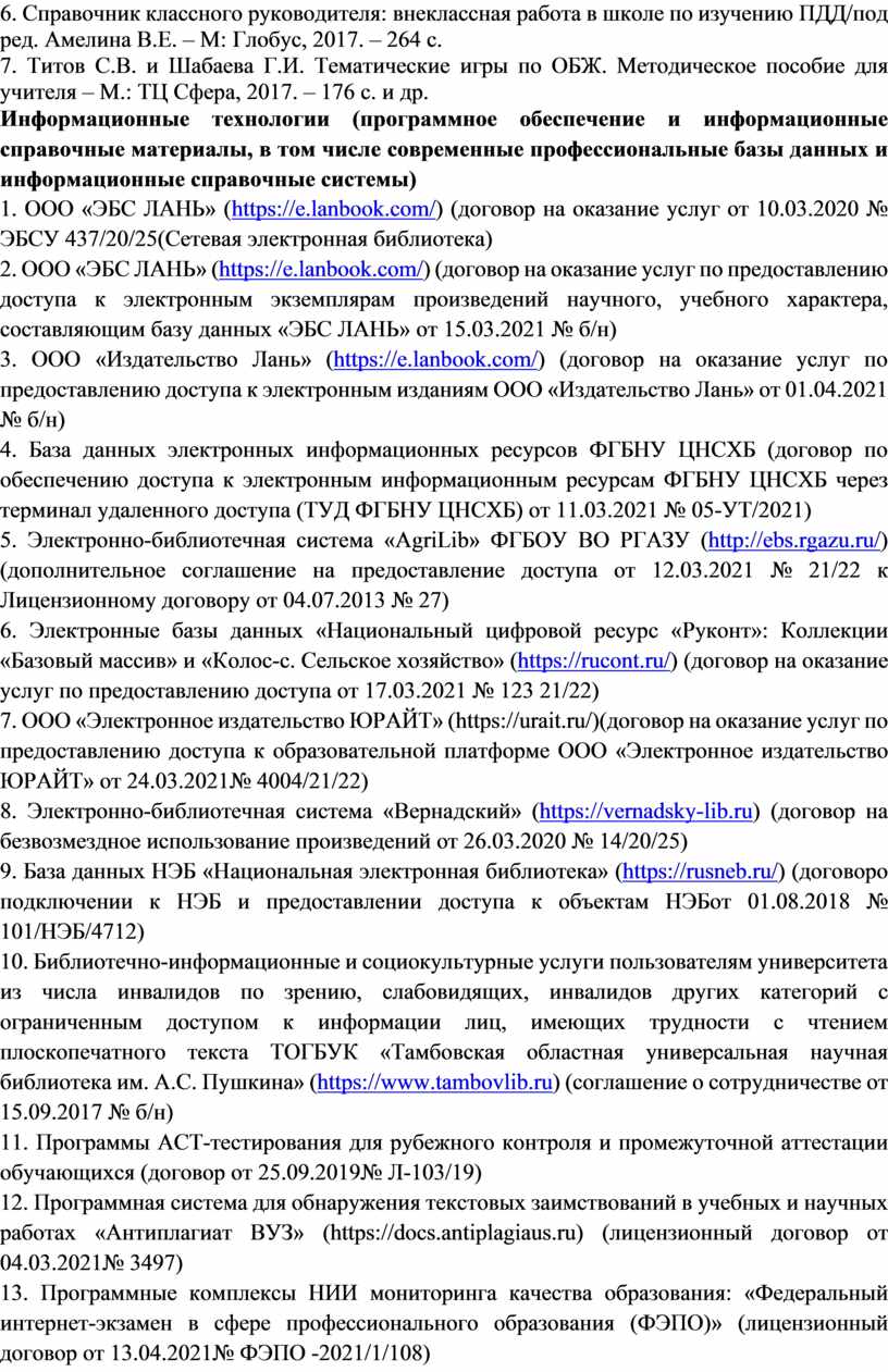 5. Электронно-библиотечная система «AgriLib» ФГБОУ ВО РГАЗУ (http://ebs.rgazu.ru/) (дополнительное соглашение на предоставление доступа от 12.03.2021 № 21/22 к Лицензионному договору от 04.07.2013 № 27)