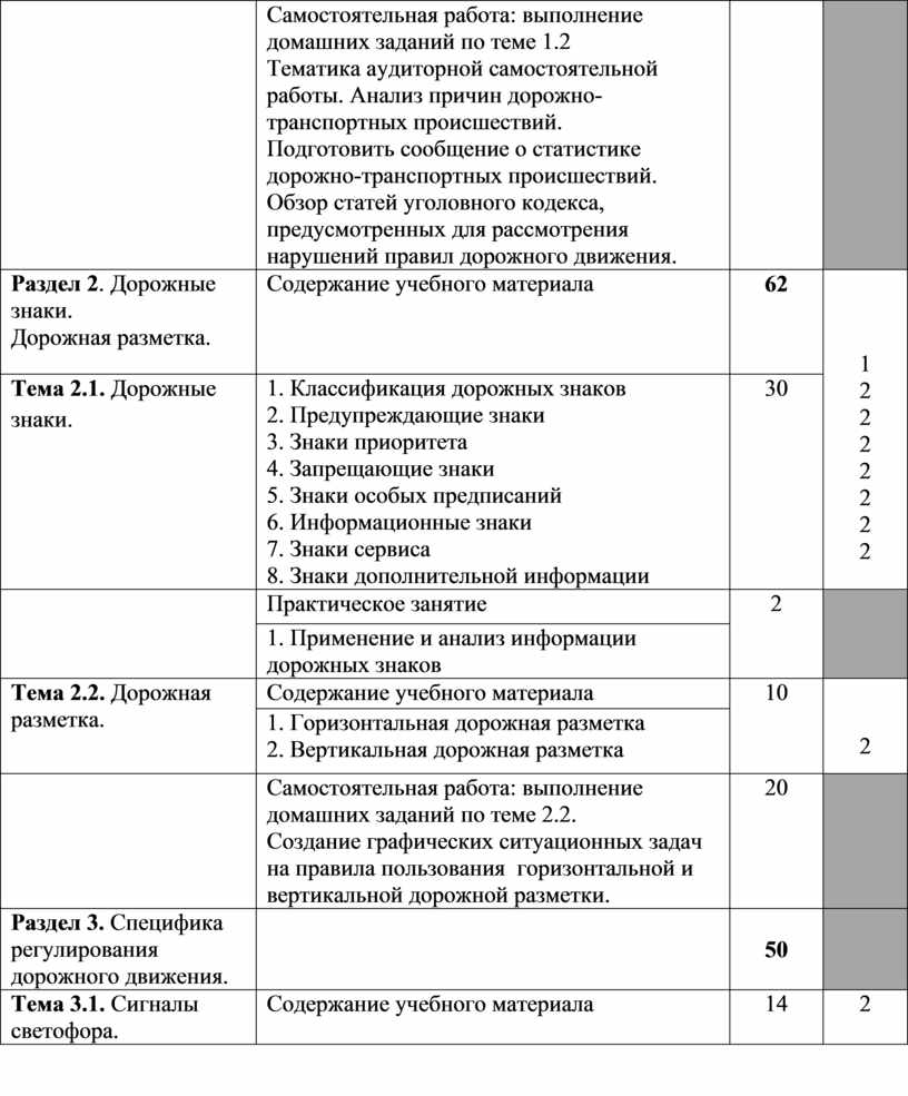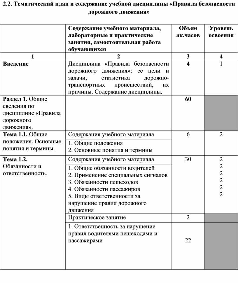 2.2. Тематический план и содержание учебной дисциплины «Правила безопасности дорожного движения»