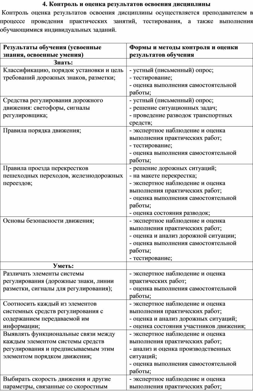 - экспертное наблюдение и оценка выполнения практических работ; - оценка и анализ дорожной ситуации; - оценка выполнения самостоятельной работы; - тестирование; |