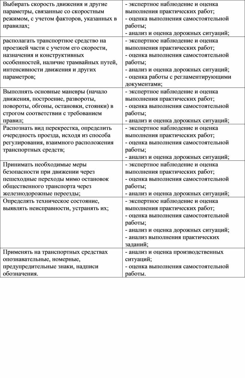 - экспертное наблюдение и оценка выполнения практических работ; - оценка выполнения самостоятельной работы; - анализ и оценка дорожных ситуаций; |