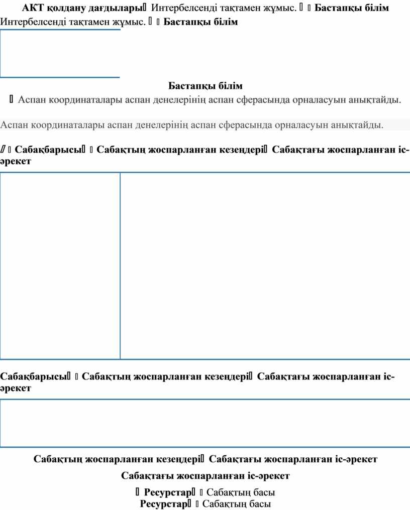 Сабақтағы жоспарланған іс-әрекет