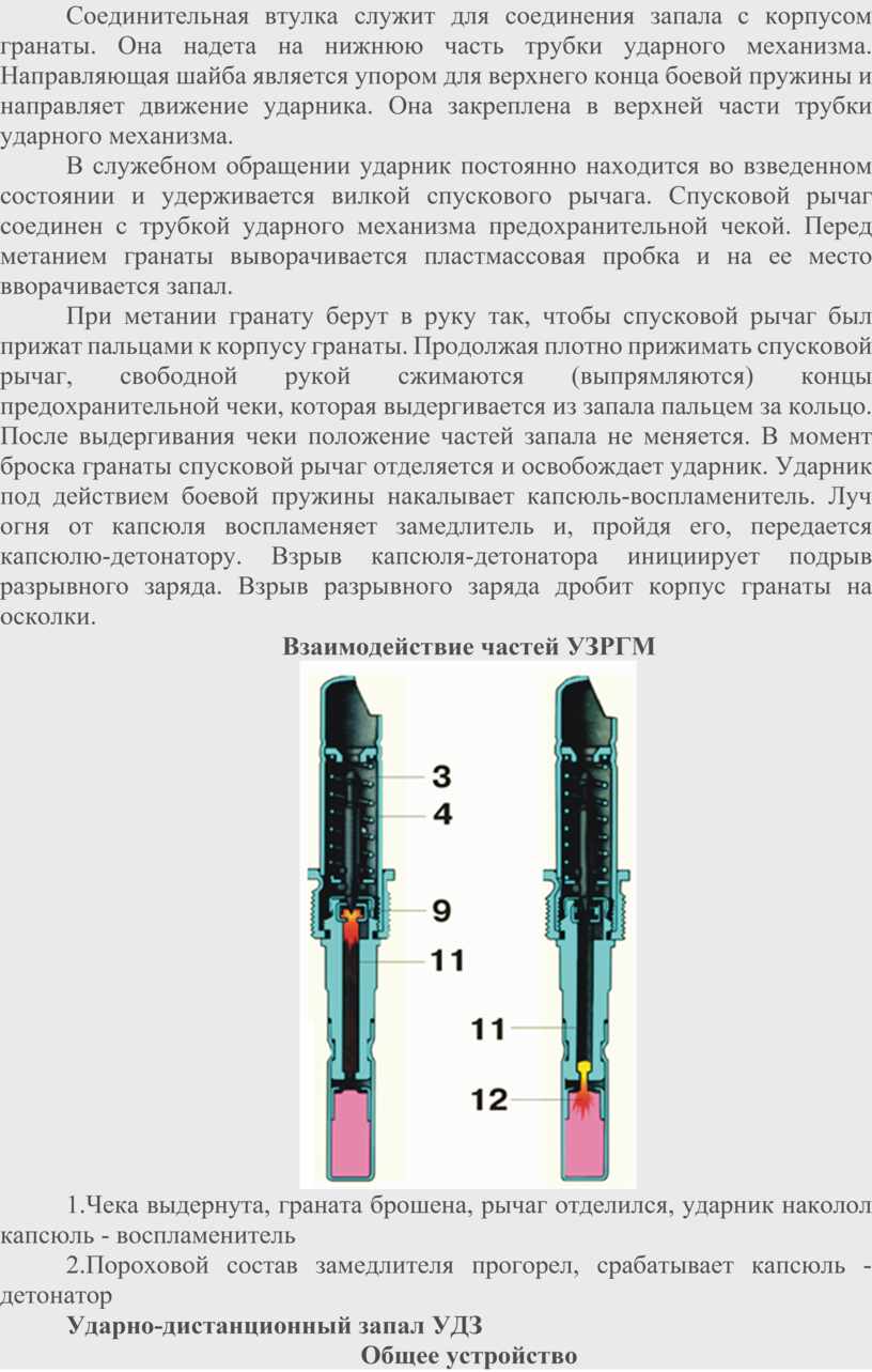 Запал гранаты УЗРГМ (унифицированный запал ручной гранаты модернизированный) предназначается для взрыва разрывного заряда.