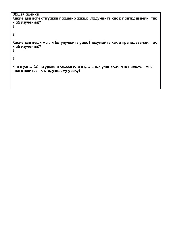 от плана урока и почему?Общая оценка: