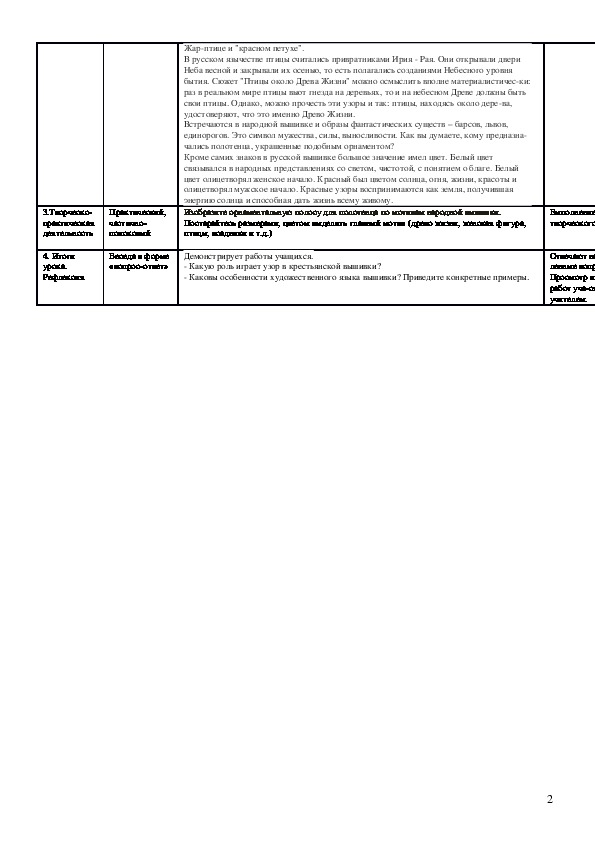 Урок формирует знания о стилизации изображения в декоративно-прикладном искусстве.\; знакомит с особенностями образного языка народной вышивки. В ходе урока обучающиеся научатся создавать варианты орнаментального построения вышивки с опорой на народные традиции.Предметные: научатся создавать самостоятельные варианты орнаментального построения вышивки с опорой на народную традицию. выделять и обобщенно фиксировать группы существенных признаков объектов (в орнаментальном поясе); изучат особенности образного языка народной вышивки.