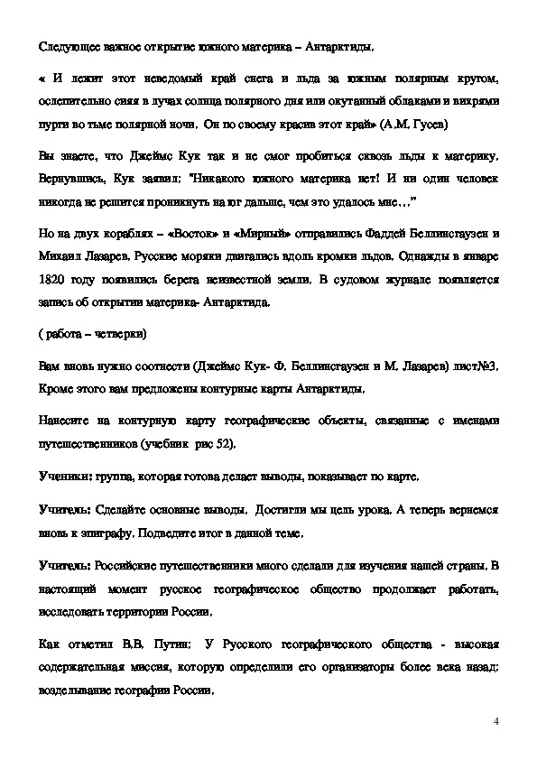 Также характерно наличие индивидуальных заданий, что позволяет учесть личностные особенности обучающихся и сделать акцент на индивидуальных достижениях и задачах.Тема урока « Русские кругосветные плавания. Открытие Антарктиды».
