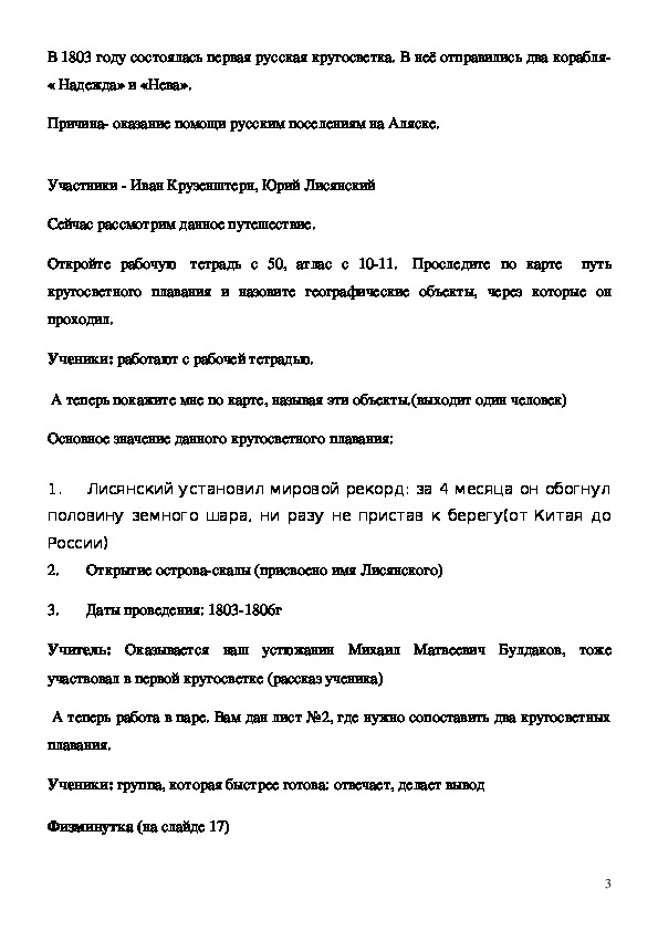 Учитель: И так тема урока «Русские кругосветные плавания. Открытие