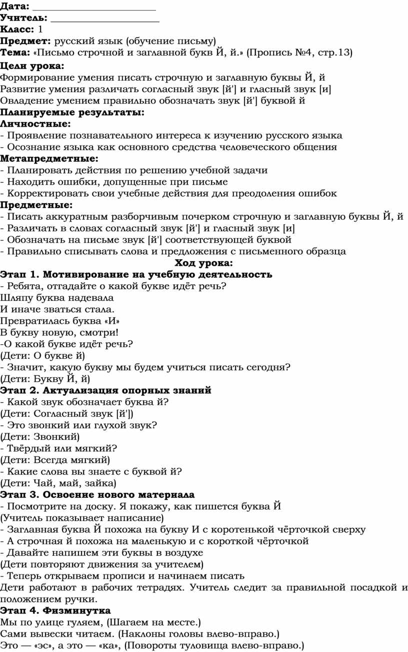 - Писать аккуратным разборчивым почерком строчную и заглавную буквы Й, й