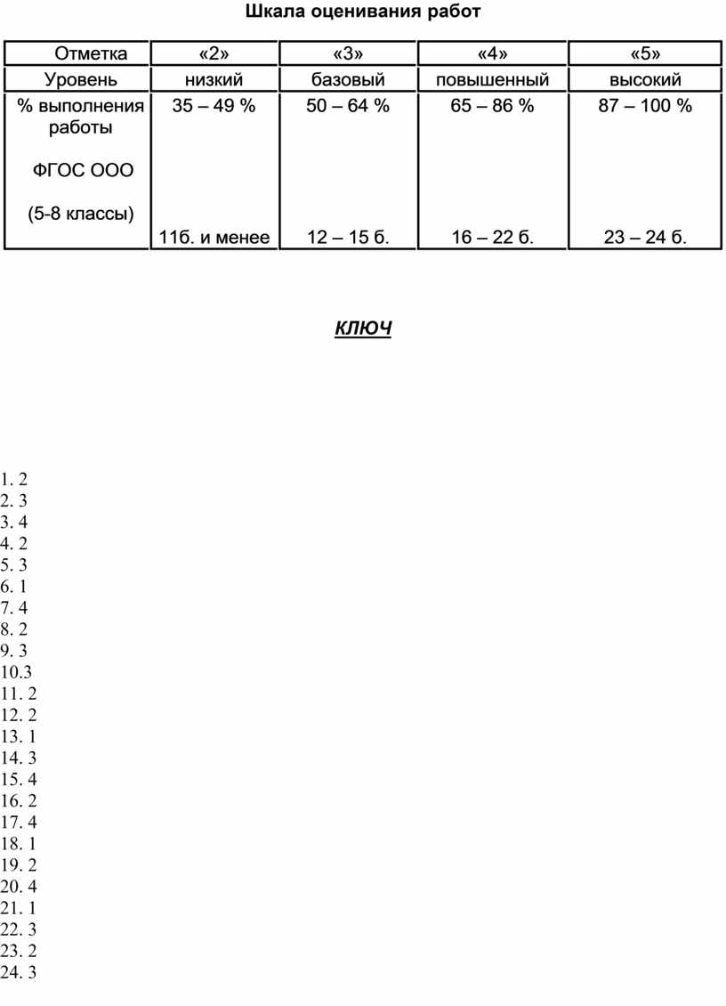 Шкала оценивания работ