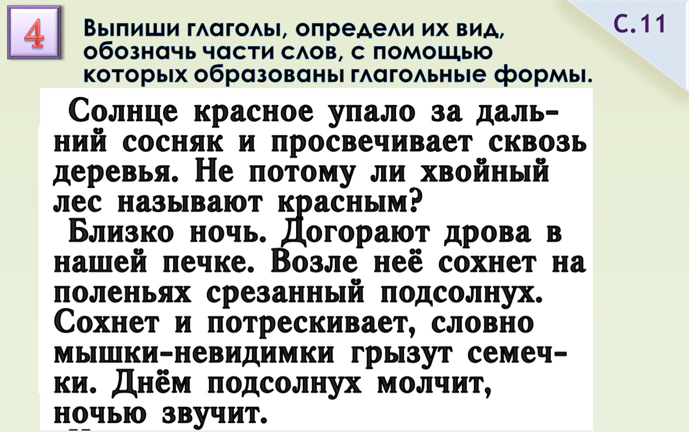Выпиши глаголы, определи их вид, обозначь части слов, с помощью которых образованы глагольные формы.