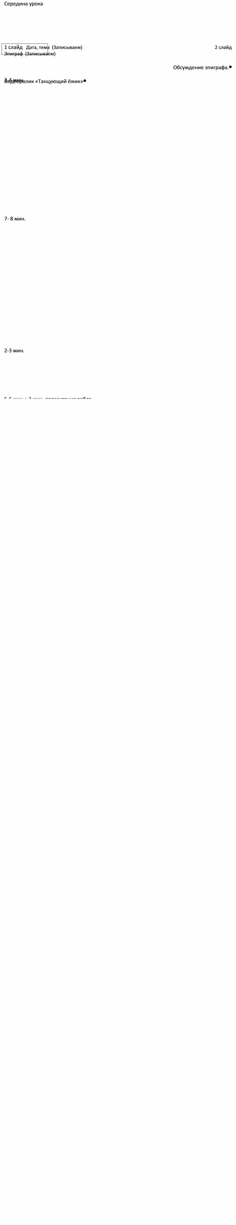 Организационный момент. 1. Стратегия разминка «Танцующий ёжик» 2. Объединение в группы «Светофор» по 7-8 учащихся. 3. Психологический настрой учащихся. 4. Целеполагание совместно с учащимися. - Какова цель нашего урока сегодня? Подумайте и сформулируйте, исходя из темы, цель урока. Что мы должны понять и чему научиться? Правило «Поднятой руки» Мотивация. Эпиграф к уроку Нужно любить то, что делаешь, и тогда труд – даже самый грубый – возвышается до творчества. М.Горький. Эта цитата из романа Максима Горького «Мать» 1 слайд Дата, тема (Записываем) 2 слайд Эпиграф (Записываем)