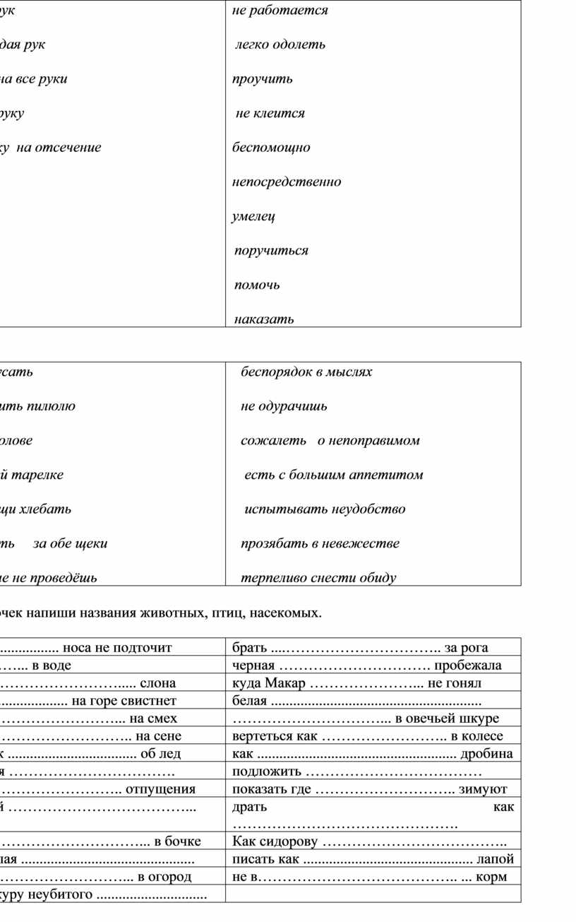 11. Упражнение в словоупотреблении фразеологизмов. Работа на уровне предложений.