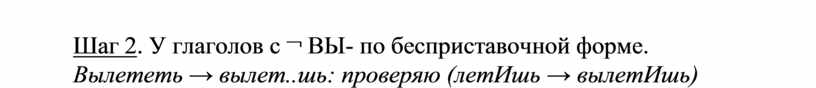 Шаг 2. У глаголов с ¬ ВЫ- по бесприставочной форме.