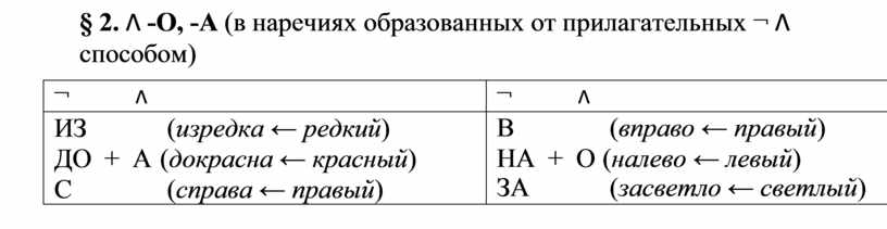 § 2. Ʌ -О, -А (в наречиях образованных от прилагательных ¬ Ʌ способом)