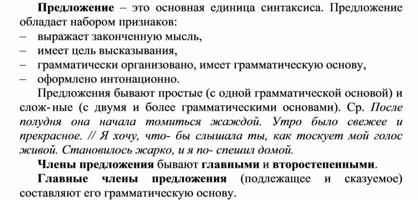 Предложение – это основная единица синтаксиса. Предложение обладает набором признаков: