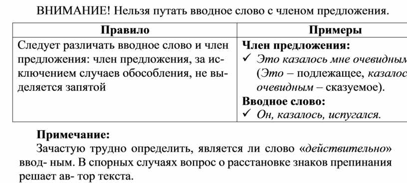ВНИМАНИЕ! Нельзя путать вводное слово с членом предложения.