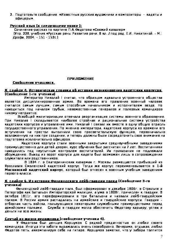 кадетам? Рассказать о нём готовы ваши товарищи и учитель МХК.